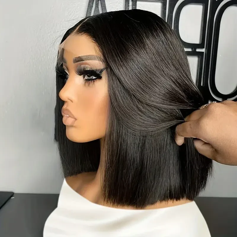 150% de densité, aspect naturel, style élégant, perruque à l'avant en dentelle 13x4 avec 150% de densité, perruque courte pour femmes